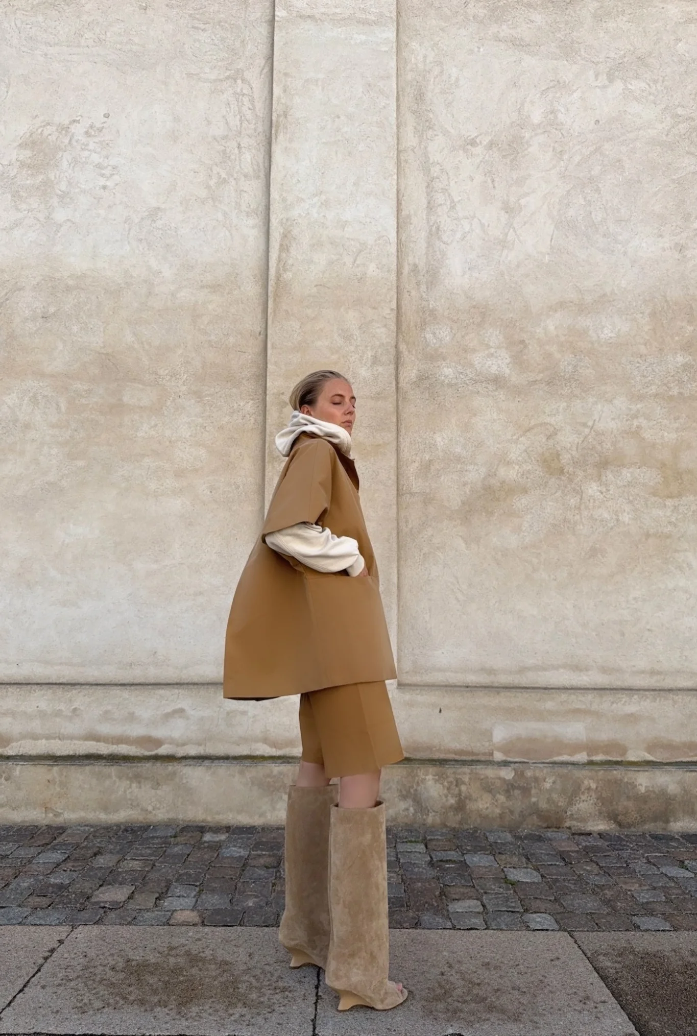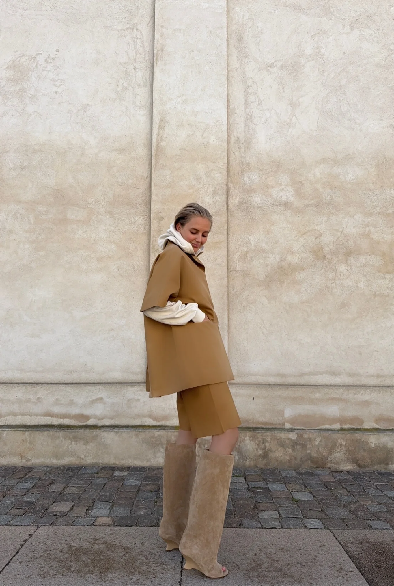 Mok-jakken er skabt i en eksklusiv italiensk deadstock–metervare – et bevidst valg for at mindske tekstilspild og fremme ansvarligt forbrug. Derfor kan farvenuancen variere en smule fra billedet. Produceret i EU med fokus på kvalitet, ansvarlighed og lang holdbarhed. Perfekt som lag-på-lag over let strik, kjoler eller skjorter – og ideel til dig, der ønsker både komfort og kant i garderoben.