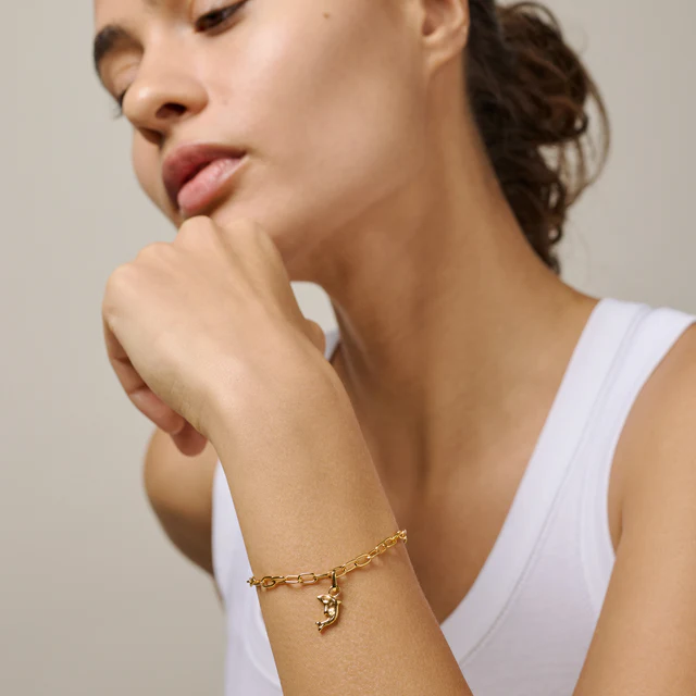 Joyful Dolphin er en del af Enamel Copenhagen charms koncept. Delfiner er kendt for deres høje intelligens og legende natur. De bruger komplekse lyde til at kommunikere og kan endda genkende sig selv i spejle, hvilket er en sjælden evne blandt dyr. Delfinen er også et symbol på kærlighed, liv og glæde. Lukkemekanismen på Joyful Dolphin charm kan tages af, og med det tilbageværende øsken, kan du sætte delfin vedhænget på en stor del af vores hoops. Vedhænget er især også beregnet til vores armbånd- og halskædeserie kaldet ’Charm’, samt vores simple halskæder og armbånd.
