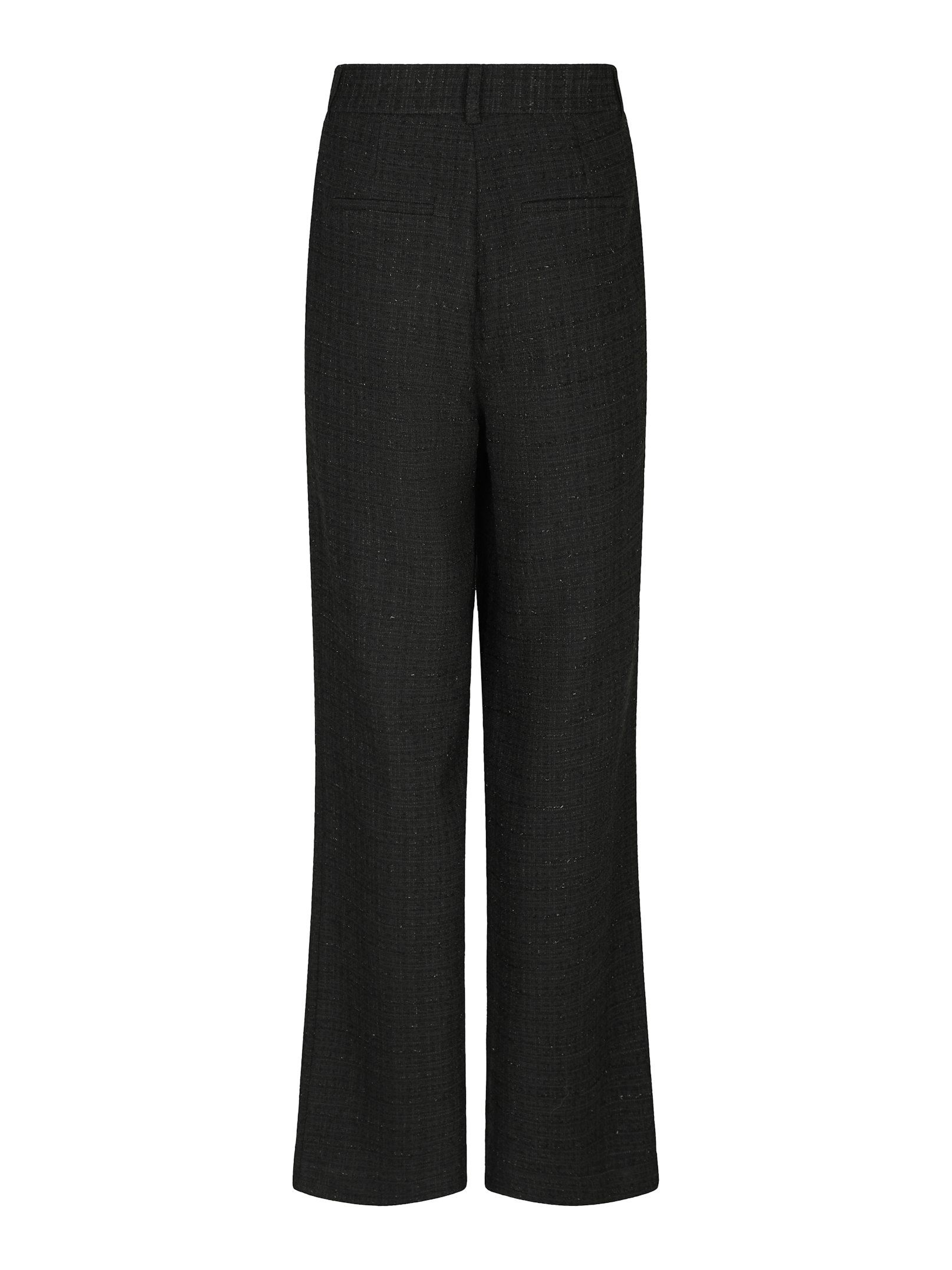 Emmett Bouclé Bukser fra Neo Noir i sort er elegante og komfortable bukser i en eksklusiv bouclévævet kvalitet med diskret glimmertråd, der tilfører et sofistikeret udtryk. Bukserne har et klassisk og flatterende lige snit med vidde i benene, skjult lynlås og sidelommer, hvilket gør dem både stilrene og praktiske. De kan styles både op og ned – brug dem med den matchende top for et fuldendt sæt til festlige lejligheder, eller tilsæt en skjorte og flade sko for et chikt hverdagslook. Perfekte til dig, der ønsker at kombinere komfort med en elegant og tidløs silhuet.