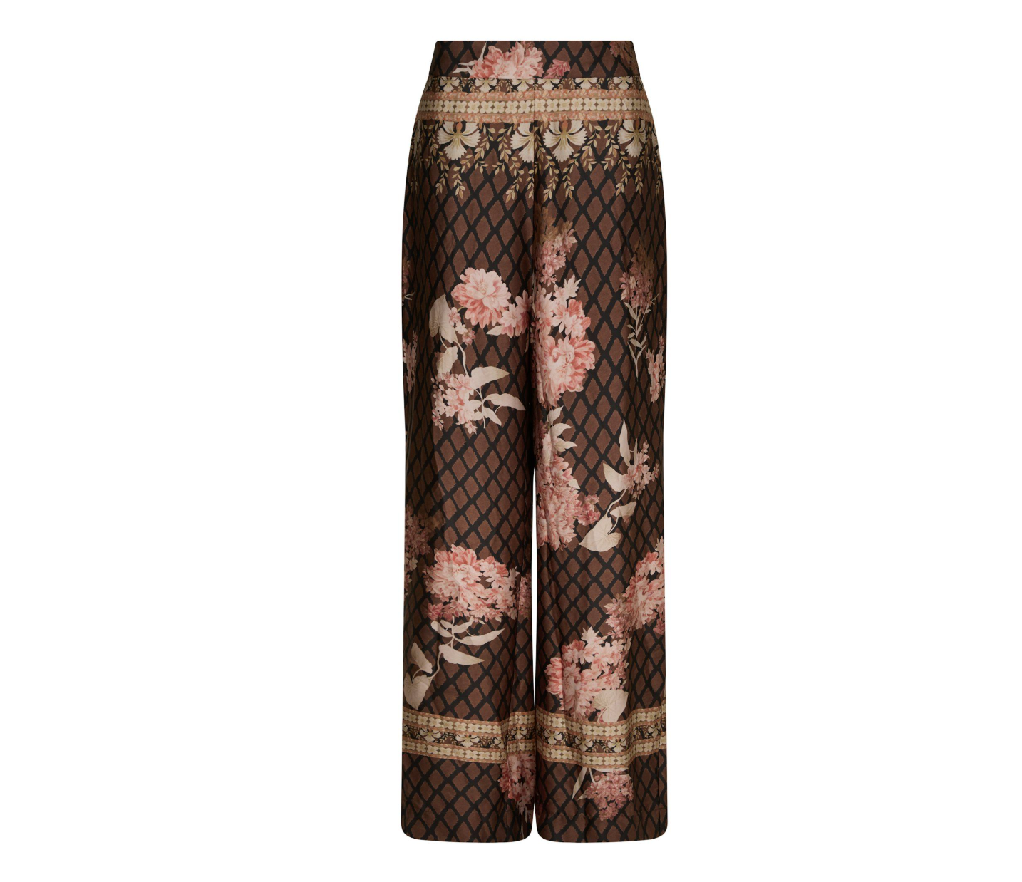 Lunet Paisley Border Bukserne fra Neo Noir er et par elegante og behagelige bukser med et eksklusivt paisleyprint i varme rosa og gyldne nuancer på en mørkebrun bund. De har en afslappet pasform med lige, løstsiddende ben og elastik i taljen, hvilket gør dem perfekte til både hverdagsbrug og mere festlige anledninger. Bukserne er lavet i en blød og let viscosekvalitet, der falder smukt og føles behagelig mod huden. De fine blomster- og bånddetaljer langs kanten skaber en raffineret boheme-look, og de skjulte sidelommer tilføjer praktisk funktionalitet. Style dem med den matchende bluse for et komplet og stilfuldt sæt eller brug dem med en enkel top for et mere afslappet udtryk.