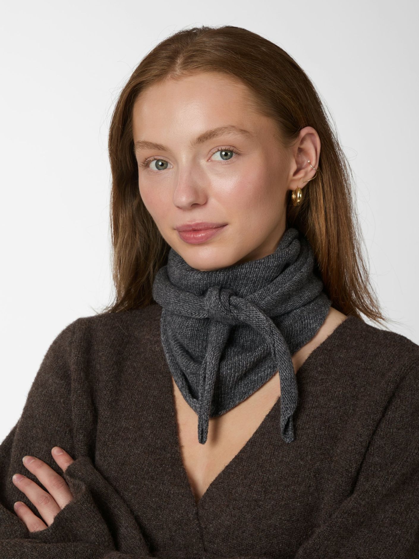 Fint Misty strik tørklæde fra Neo Noir i en skøn cashmere-mix kvalitet, der kan nå to gange rundt om halsen.