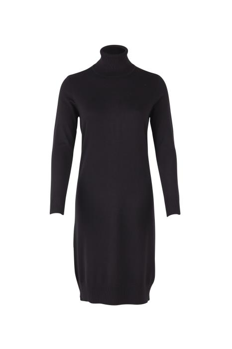 Fin Mila strik kjole fra Saint Tropez i sort. Kjolen kommer i en skøn og åndbar viskose kvalitet med rullekrave, lange ærmer og en længde til omkring knæene.