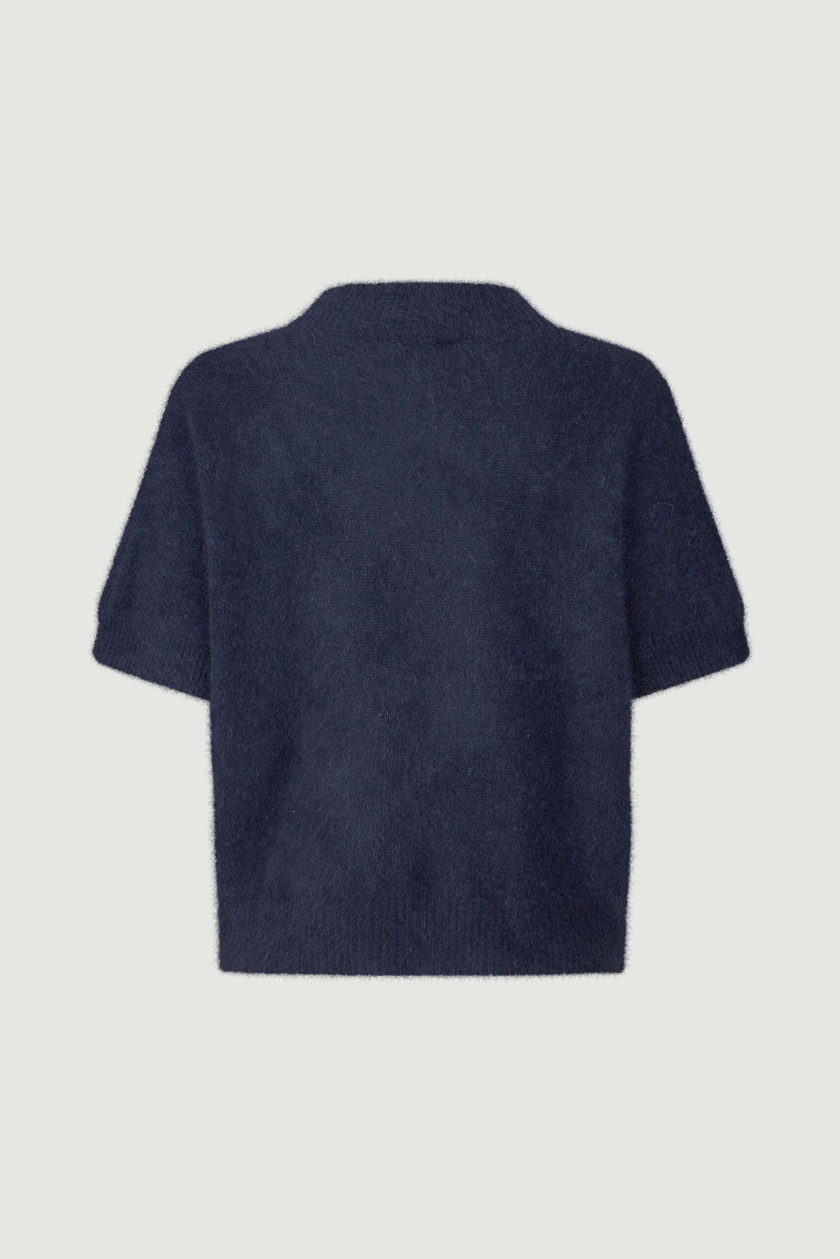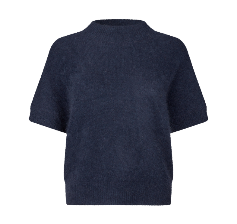 Doanna strikblusen fra Six Ames er en smuk og enkel kortærmet bluse i en eksklusiv blanding med 100% vaskebjørnuld, som gør den både utrolig blød og lun at have på. Den har en afslappet pasform med rund halsudskæring og diskret ribkant ved ærmer og bund, som giver et moderne og elegant udtryk. Den mørkeblå farve er klassisk og alsidig og gør Doanna perfekt både til lag-på-lag looks over skjorter og alene til et par jeans eller en nederdel. En favorit til både hverdagsbrug og kontoret – eller som en chic og komfortabel tilføjelse til din capsule wardrobe.