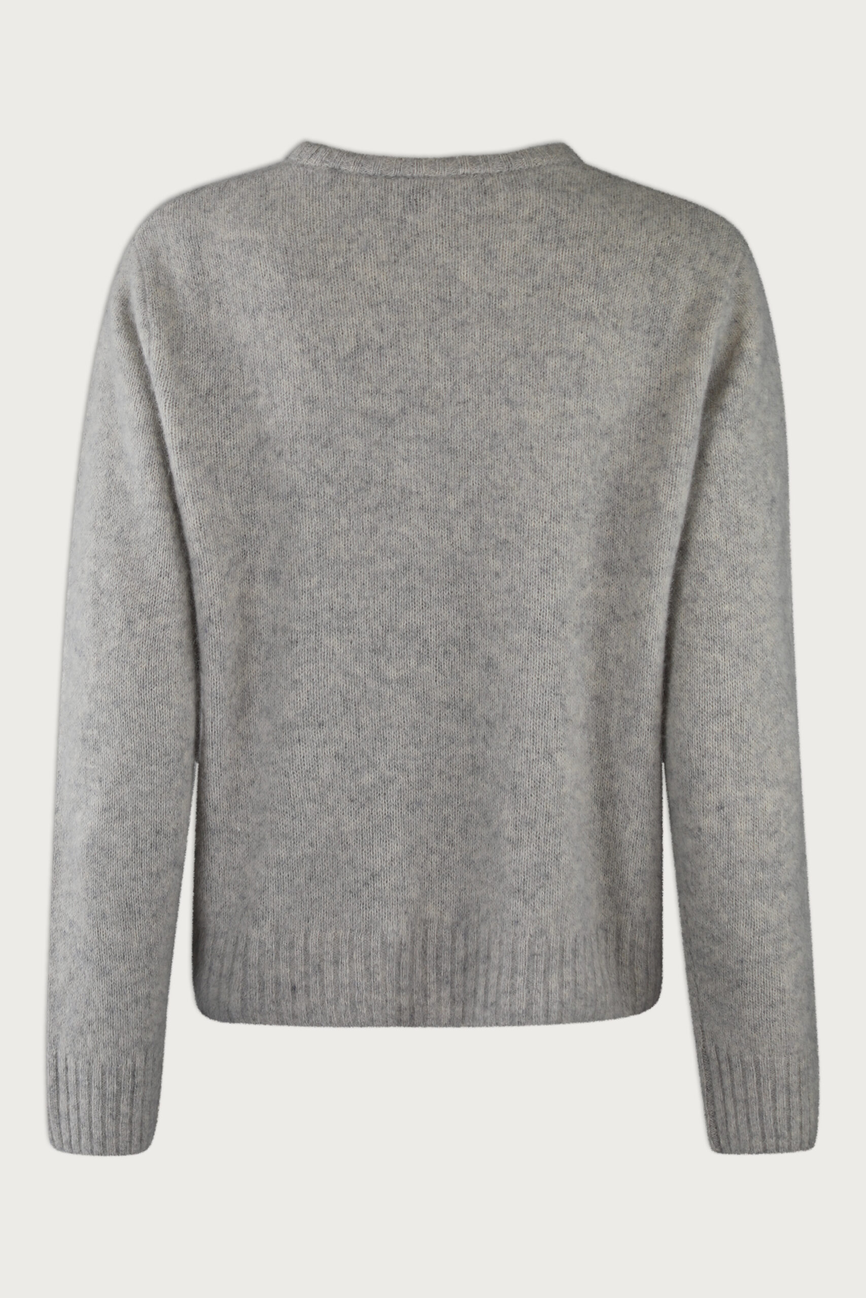 Lily Strikblusen fra Six Ames i farven Grey Melange er en elegant og eksklusiv langærmet strikbluse, der kombinerer luksuriøs komfort med et sofistikeret udtryk. Den bløde og let fluffy vaskebjørneuld gør blusen både lun og let. Designet har en flatterende, feminin silhuet med rund hals og ribkanter, der giver et diskret løft til det minimalistiske look. Perfekt til lag-på-lag styling i hverdagen eller som en stilfuld statement-top i sig selv – en ideel tilføjelse til enhver garderobe, der værdsætter kvalitet, komfort og stil.