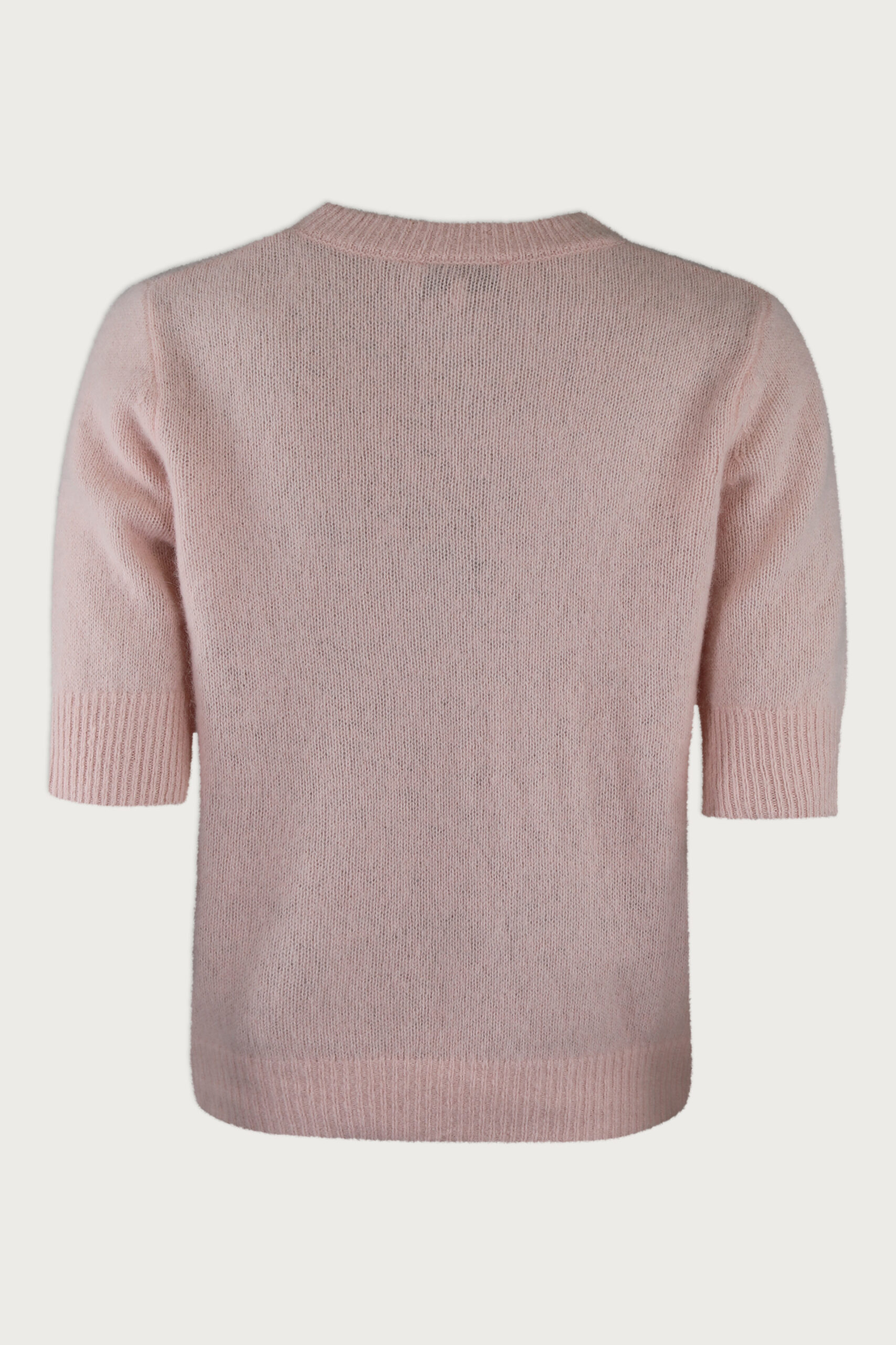 Rocca strikblusen fra Six Ames i farven Chintz Rose er en elegant og eksklusiv kortærmet strikbluse, der kombinerer luksuriøs komfort med et sofistikeret udtryk. Den lyse rosa nuance tilføjer karakter til garderoben, mens den bløde og let fluffy vaskebjørneuld gør blusen både lun og let. Designet har en flatterende, feminin silhuet med rund hals og ribkanter, der giver et diskret løft til det minimalistiske look. Perfekt til lag-på-lag styling i hverdagen eller som en stilfuld statement-top i sig selv – en ideel tilføjelse til enhver garderobe, der værdsætter kvalitet, komfort og stil.