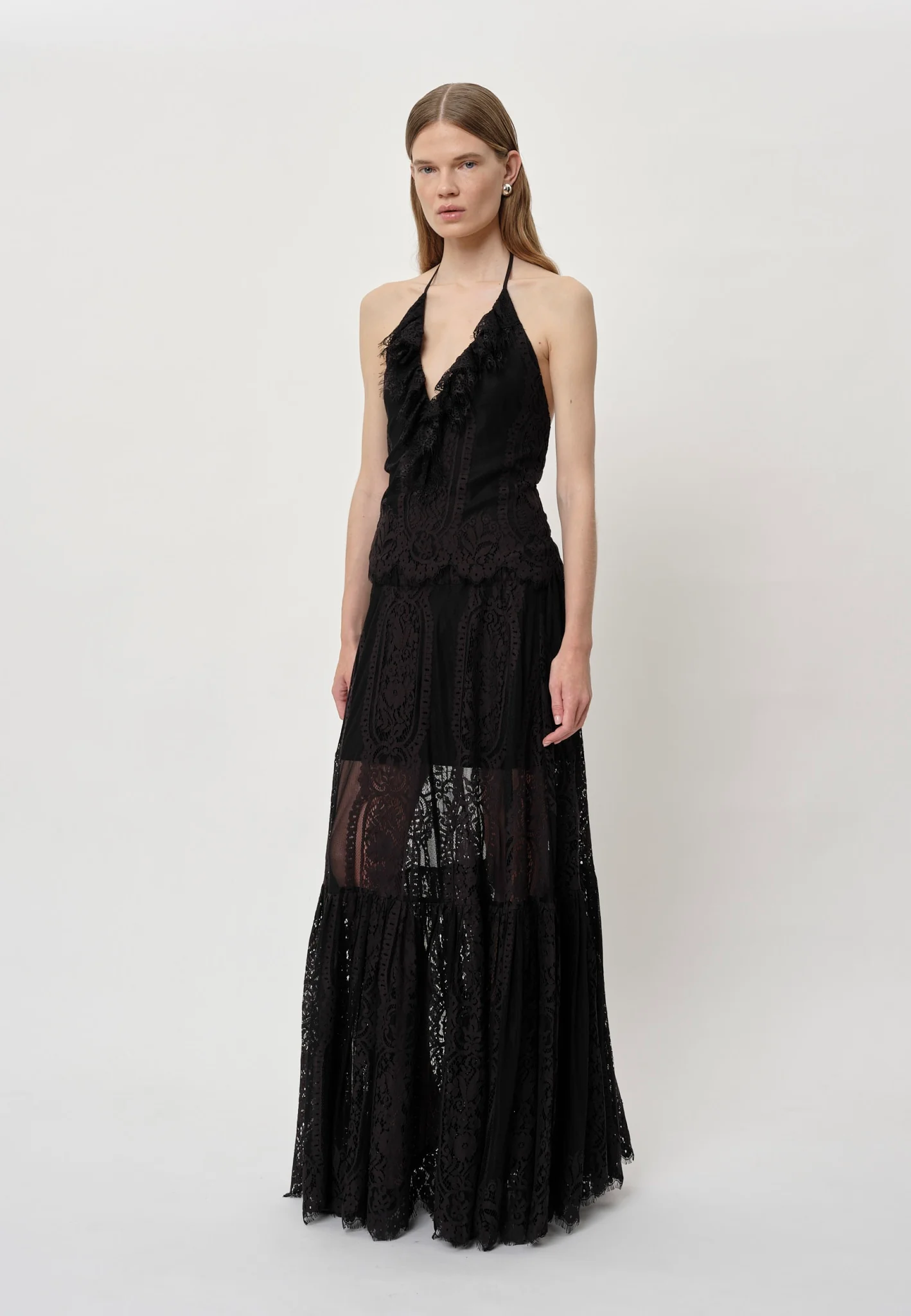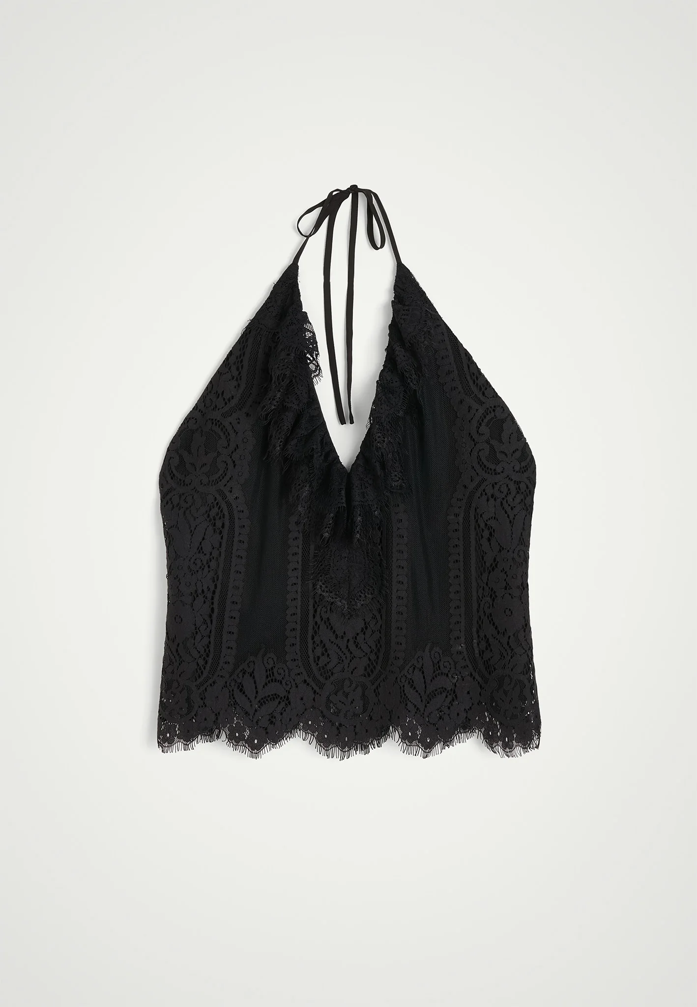 Super flot Tina top fra Herkind i en skøn bomuld-nylon kvalitet med smukke blonde detaljer. Toppen har åben ryg, flot feminin v-hals udskæring og bindes i nakken.